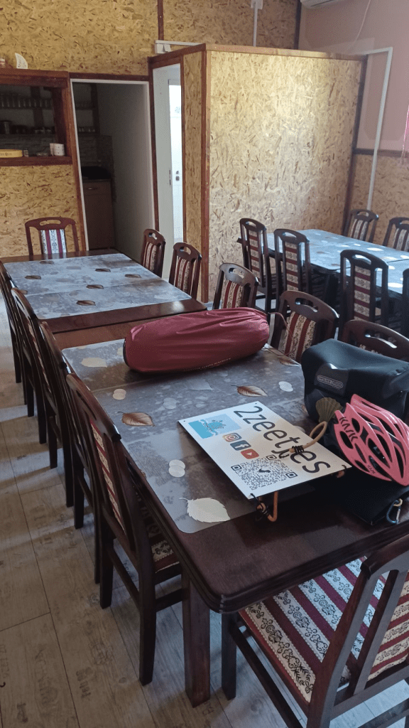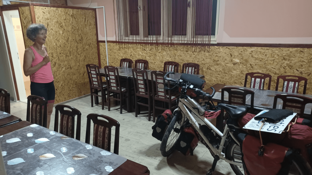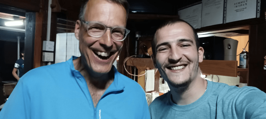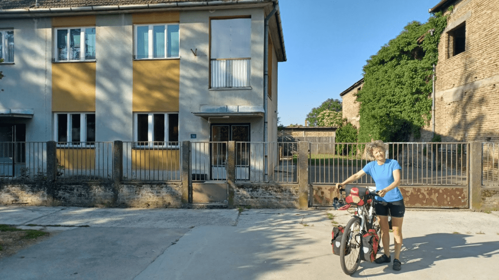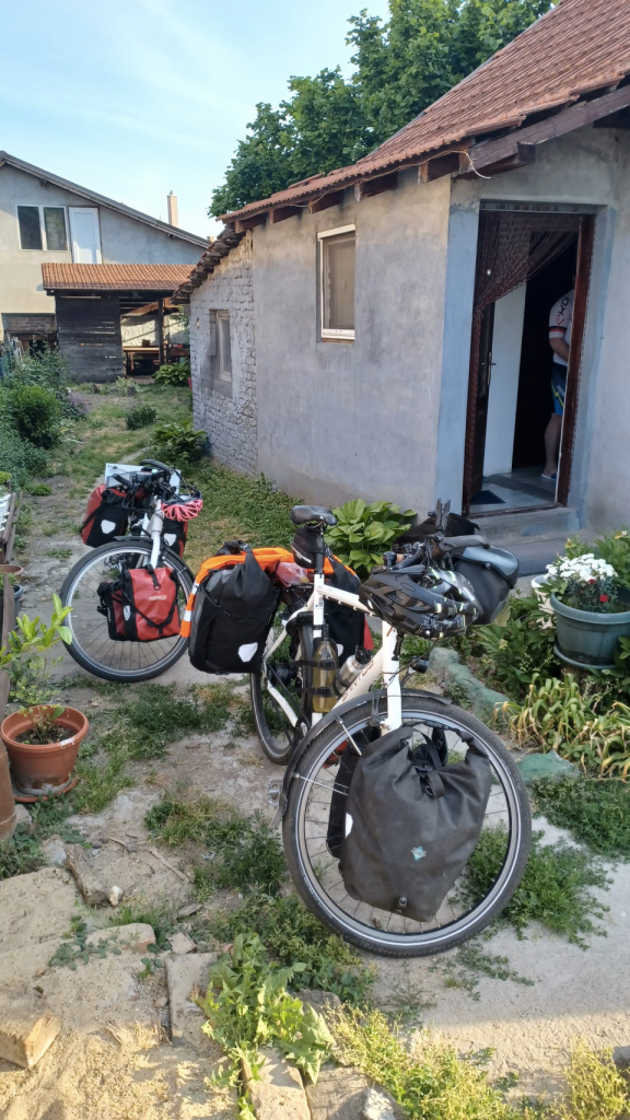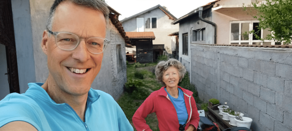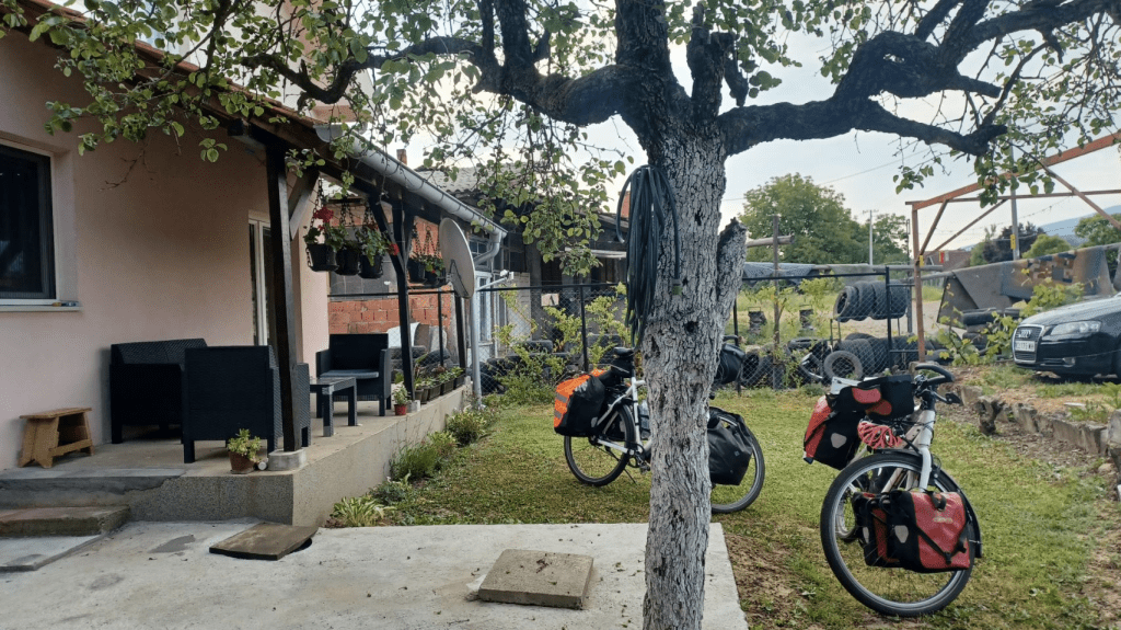 Aangekomen in Smederevska Palanka hebben we nog geen slaapplek. Op zoek naar brood voor het ontbijt worden we door een oudere man aangesproken. Herr Buda ( voornaam). Na een leuk gesprek, hij kan zich niet voorstellen dat we dit doen en al helemaal niet dat we nog niet weten waar we gaan slapen, biedt hij aan bij hem te slapen. Hij heeft een huisje verderop waar hij 3 maanden per jaar is. De rest is hij Osnabrück. Dus we kunnen Duits spreken. Leuk huisje, achtig uitzicht! Wel eerst nog ff 11% omhoog 😓. Herr Buda neemt ons mee uit eten naar een restaurantje aan een meertje, erg leuk. Later bij hem thuis nog een zelfgemaakte schnaps en ook zelfgemaakte rode wijn 🍷. En de volgende ochtend een heerlijk ontbijt met gebakken ei. Om 8 uur rijden we weer weg na weer een ontzettend leuke ontmoeting.