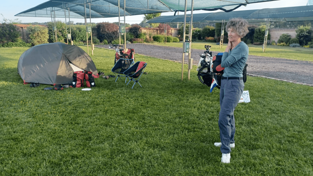 Uiteindelijk hebben we een slaapplek gevonden, bij mensen thuis, waar we tent inde voortuin konden zetten. Best wel een tikkie ongemakkelijk