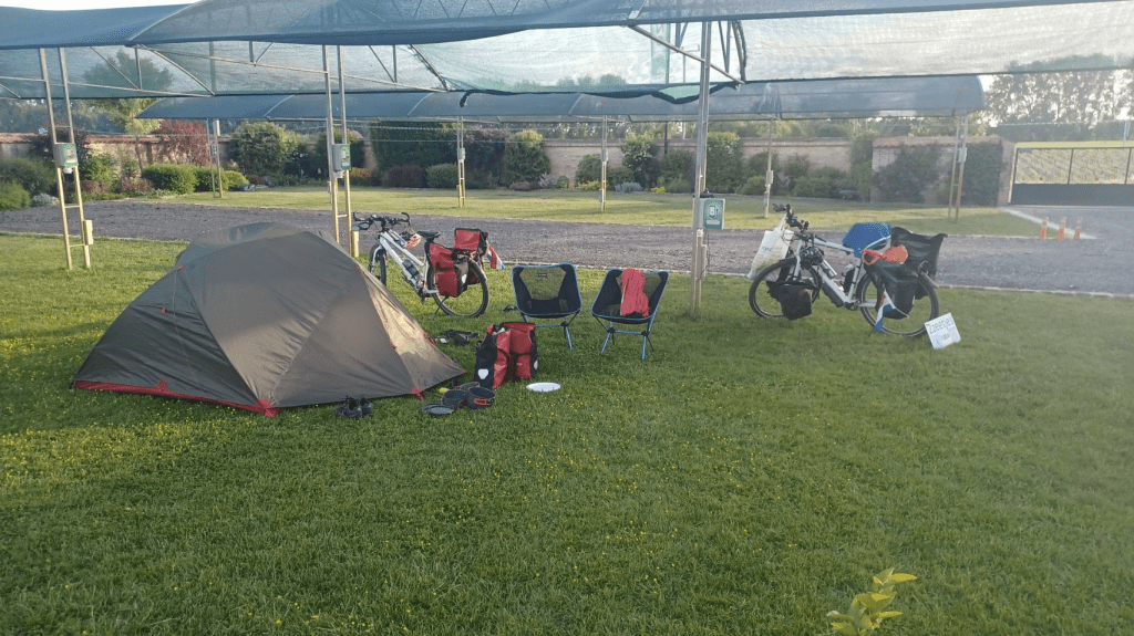 Camping ligt een stuk hoger dan de stad en onze routeplanner OsmAnd stuurde ons via een onverharde omweg naar de camping. Erg steil en nauwelijks te fietsen.