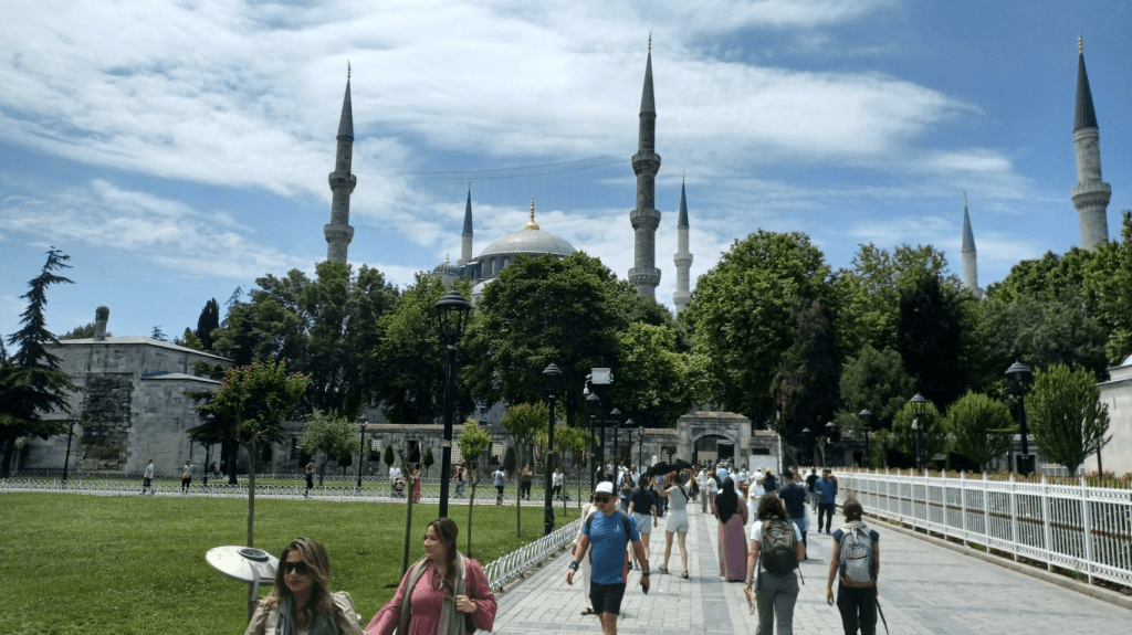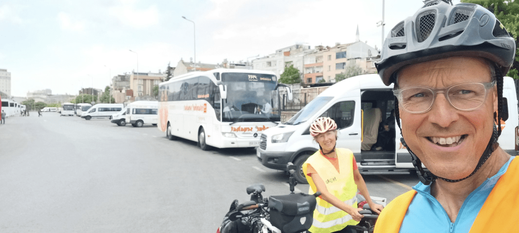 Wakker geworden en alles is nog in ruste. Alle zwerfhonden liggen nog overal te slapen. De beloofde regen is uitgebleven, we pakken onze spullen, zeggen Hakan en Şahsim gedag en gaan het stadje in voor het ontbijt. Het terras bij het theehuis is hiervoor een prima plek. De weg naar Saray begint super steil, het is al aardig warm, maar we redden het vrij goed. We zijn dus toch sterker geworden. We moeten opletten, want na 23 km hebben we 2000 km gefietst vanaf Wenen en dat moet natuurlijk worden vastgelegd en gedeeld😄. In Gungormez maken we een foto van de 2000km “op de teller” bij de moskee. Bij de bakker kopen we een brood en krijgen we vervolgens thee, nog meer brood, kaas en olijven. We worden wederom verwend☺. In Saray pakken we de bus naar Istanbul, zodat we de drukke en naar sommige verhalen gevaarlijke wegen kunnen vermijden. Na tweeënhalf uur komen we aan op een grote busterminal. Wat een chaos en best lastig om er op een fiets vanaf te komen. De navigatie app OsmAnd loodst ons perfect op weg, en met een paar aanpassingen van Sijtse, snelweg vermijdend, afgesloten wegen omzeilend, komen we aan bij de contactpersoon van ons Airbnb appartement. Onze hollandse fietskunsten, samen met extreem duidelijke communicatie over onze intenties en een dosis geluk, hebben de rit in Istanbul van 10 km uiteindelijk tot een succes gemaakt. Dit was het einde van de Sultans Trail en dat wilden we niet missen. We hebben een heel appartement voor ons alleen in de rustige wijk Bakirkoy. Hier blijven we 4 nachten en gaan we 3 dagen Istanbul verkennen….zin an!!!