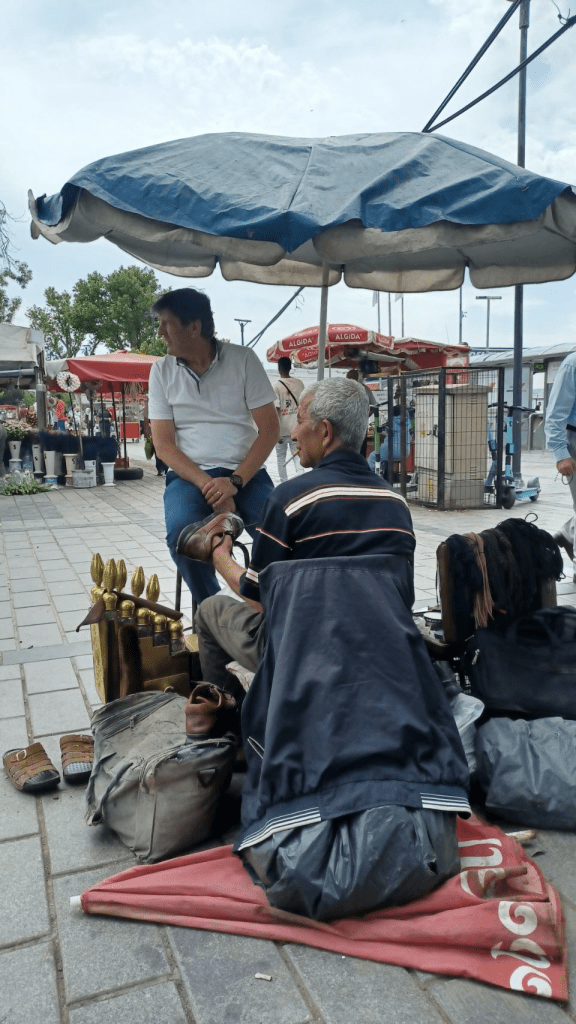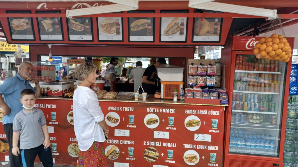 Gisteravond in de buurt van het appartement wat gegeten. In dezelfde straat een stuk verderop, met zo’n gladde ober😝. Bier is in Turkije wel een dingetje. We hebben dorst, willen bier en de ober haalt het bij een winkel verderop. Uitgeserveerd in dubbele plastic bekertjes, smaakt het toch goed. Bij het afrekenen voelen we ons belazerd. Het bier blijkt erg duur – het geheel kost € 15, terwijl het eten misschien maar 5 euro zou zijn😏.
