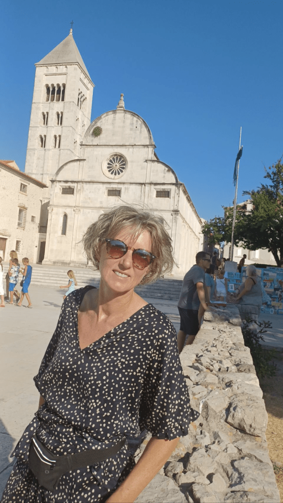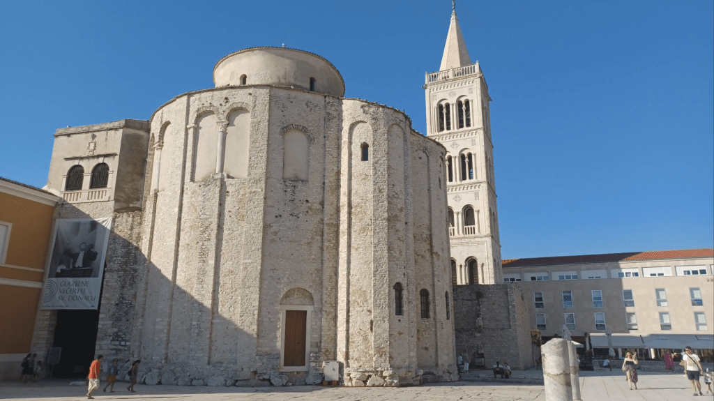 Stukje fietsen over Pasman naar het volgende eiland Ugljan, over een brug en dan de veerboot naar Zadar. Mooie omgeving, prachtig langs de zee fietsen en daarna Zadar in fietsen. Weer een mooie oude stad. Lunchen in de oude stad in een parkje aan de boulevard ( uitgebreid gesproken met een Hongaarse vlaming) en dan naar de gehuurde kamer: op de begane grond aan de straat ff buiten de oude stad. Net als in Plovdiv. Nadat we ons geïnstalleerd hadden weer terug naar de oude stad om wat te drinken en te eten. ’s Avonds loopt de oude stad vol met toeristen die de zonsondergang willen bekijken ( wij ook ) en het zeeorgel beluisteren, heel geinig. We lopen en passant nog fietsers tegen het lijf ook, uit Mexico en Duitsland.