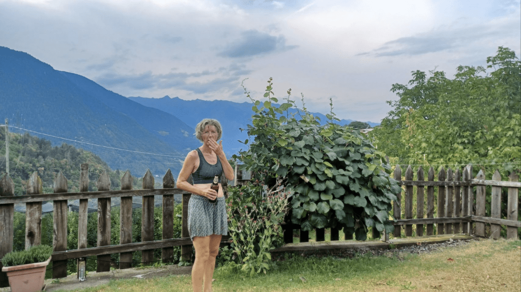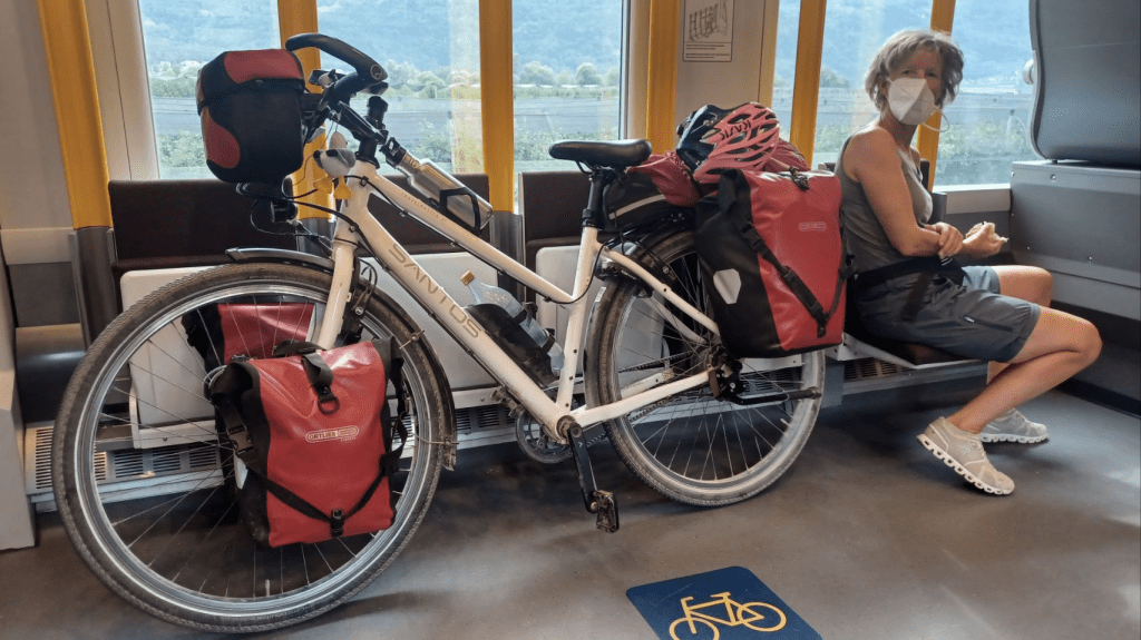 Vandaag een lange treinreis van Ancona, via Bologna en Bolzano naar Lana. Alles loopt volgens plan en we komen rond 17 uur aan in Noord Italië. Dan moeten we nog naar de camping fietsen en dat is 400 m stijgen. Eerst omkleden in onze fietskleding want dat wordt gegarandeerd zweten. Dat klopt inderdaad en we regenen ook nog eens drijfnat. Dat is weer even geleden en koelt ook lekker af. Als we onderweg even stoppen nog ff een kletspraatje met een locale bewoonster. Op de camping blijkt er ondanks onze reservering alleen een plekje aan de rand van de camping. Hm, tja, we moeten morgen maar eens zien wat we daar van vinden.