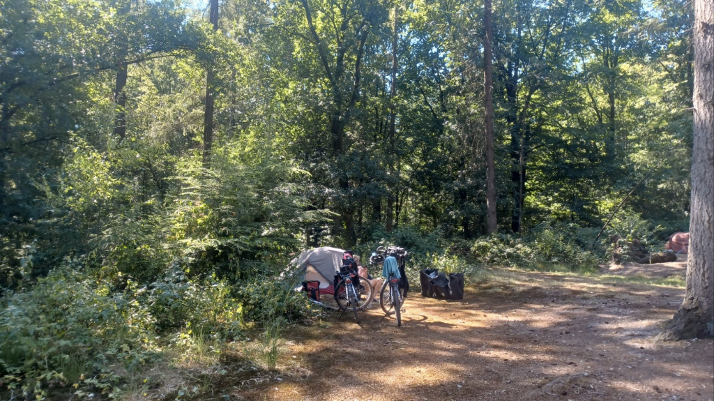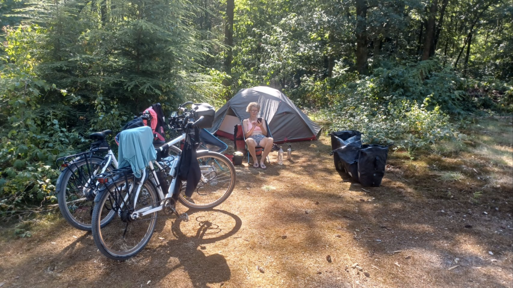 We zijn weer op weg!!! De eerst van van onze tocht vanuit huis naar ons goede doel “The Green Rebel”, ongeveer 175km ten zuid westen van Barcelona. Het is ook dag 103 van onze 6 maanden fietstocht – best wel cool om zo lang vrij en onderweg te zijn. Vandaag zijn we naar Groesbeek gefietst, via een vrij recht lijn vanuit huis, dwars door Apeldoorn, Arnhem en Nijmegen en dat ging bijzonder gladjes. Bijna de gehele weg hadden we mooie vrijliggende fietspaden. We kamperen op het Natuur kampeerterrein Groesbeek en staan op het tentenveldje. Wat een heerlijk groene rustige plek midden in het bos. Een fantastische start van deze reis!!!
