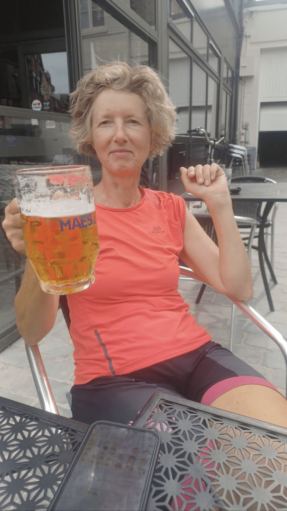 Vandaag hebben we een rustdag. We hebben inmiddels 6 dagen gefietst én er is gisteren veel nat geworden tijdens het regenen, maar ook de kille klamme avond op de camping. Dus we gaan wat uitslapen, rustig aan doen, en in Dinant kijken. Daar zit de Leffe Abdij, dus…..ja natuurlijk moeten we ff gekeken hebben. Daarna een Leffe Blond nuttigen en dan weer terug naar de camping. Morgen gaan we Frankrijk in.