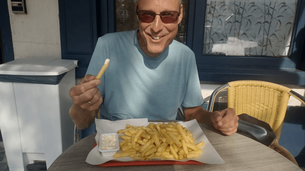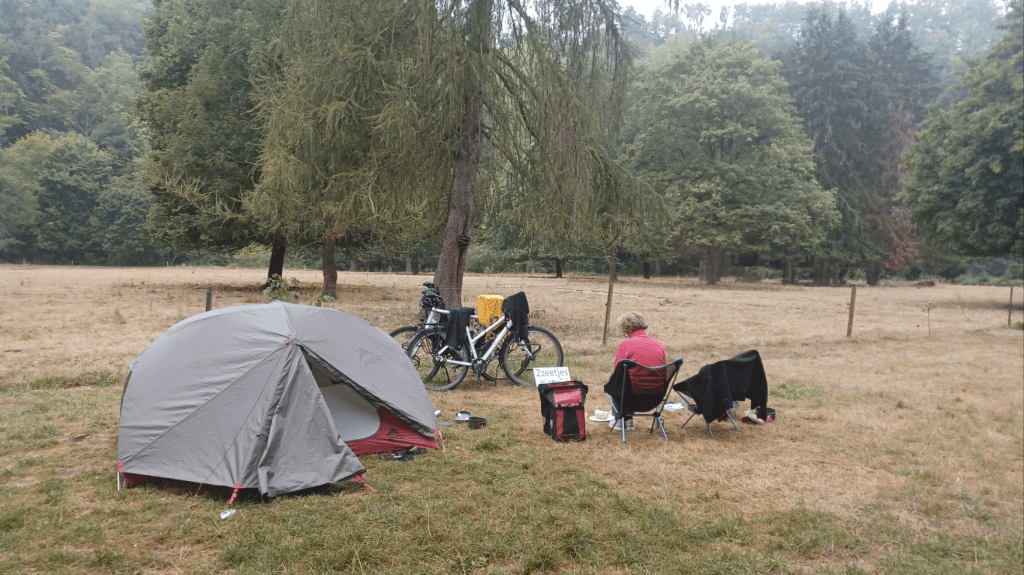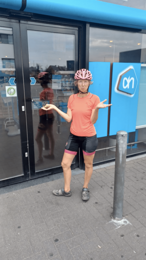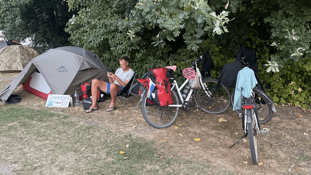 Relaxed ontbeten en pas om half 11 vertrokken richting Valkenswaard naar een fietsenmaker. Sijtse’s achterrem functioneert niet helemaal goed; er lijkt lucht in de leiding te zitten. Helaas kan de beste man het euvel niet verhelpen dus door maar weer. Andere fietsenwinkels zijn dicht. Het is niet urgent dus verder op de route hopelijk meer geluk. We passeren de grens met België en rijden al vrij snel op een oud spoorlijntje. Heel soepel. Doel is Pelt, niet al te ver. Als we ter plekke inkopen willen doen blijkt alles dicht. Vandaag blijkt een nationale feestdag: Mariahemelvaart. Hadden we ff niet gecheckt 🫤. Gelukkig kunnen we op de camping nog een lekker biertje krijgen en verder hebben we nog wat pasta, knoflook, tomaten en komkommer. En met een halve ui van de buren Jan en Margreet hebben we toch een lekker maaltje 😏. Jan en Margreet blijken ons te kennen van de fietsvakantiepodcast! Wat grappig 😁. Zij zijn ook fietsers en ook met de fiets op weg naar Zuid Spanje. Genoeg gespreksstof dus! Heel leuk 👌😄!
