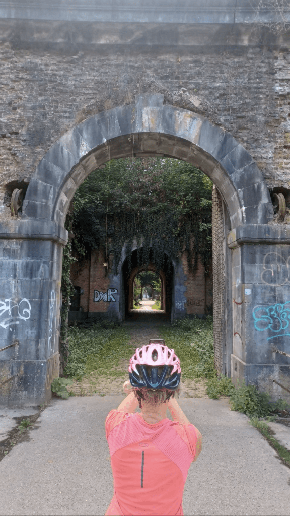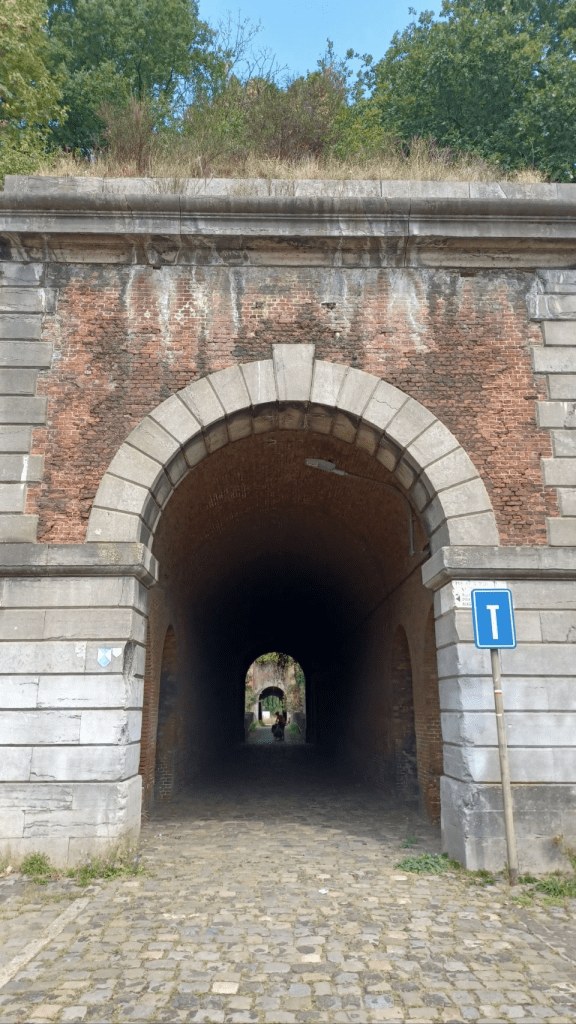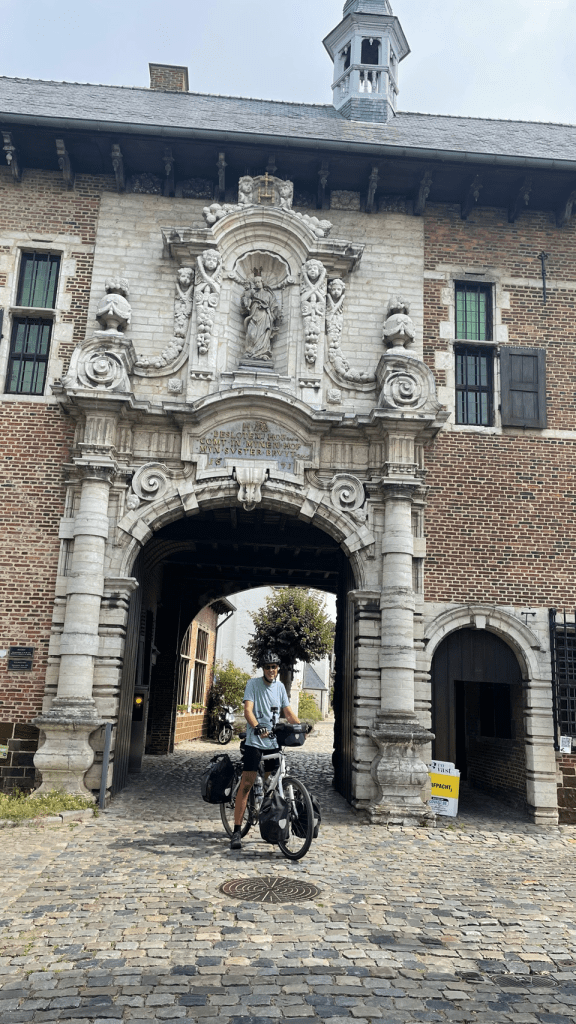 We fietsen verder door België naar het zuiden. We komen ineens flinke heuvels tegen, die in OsmAnd Terril heten: Wikipedia geeft hierover aan: “Een steenberg of terril is een ophoping van steenafval als bijproduct van ondergrondse mijnbouw. Een mijnsteenberg bestaat uit een mengeling van schiefergesteente, kalkrijke rotsblokken, steenkoolafval, lichte klei- en zandleemdeeltjes, waarbij ook diverse soorten afval werden gedumpt”. Dan komen we langs het terrein van de gesloten Beringen-mijn, welke is omgebouwd voor allerlei sporten, zoals MTB’n, duiken, wandelen, maar ook allerlei informatie over de mijnbouw geeft. We zoeken een bar om koffie te drinken en stoppen bij een Turks café. Net zoals in Turkije zitten er mannen op het terras aan de thee (Chai). We raken aan de praat met wat mensen en vertellen over onze fietsreis naar Istanbul. Heel gezellig. En we krijgen de koffie (weer) gratis! Ook hier Turkse gastvrijheid! We rijden door over stukken van een voormalige spoorlijn en door allerlei dorpjes. Vooral Diest is best leuk en heeft een bijzondere stadswal (zie foto). Uiteindelijk komen we na 82km aan in Tienen. We nemen een pintje en daarna een grote bak frieten. Dan boodschappen doen voor de salade die we op camping “de Mulkerij” gaan eten. De camping ligt midden in de stad en is een voormalig veeteeltbedrijf. Het dak van de oorspronkelijke stal staat er nog en is omgebouwd tot gezellig terras met hangmatten, grill en containers voor keuken en sanitair. Kinderen rijden er rond op fietsjes en skelters en er is een fantastisch natuurzwembad. We kamperen in de kleine boomgaard. Heel gemütlich.