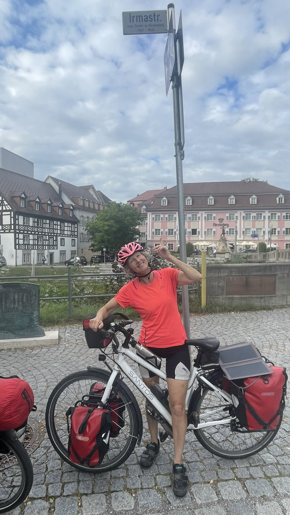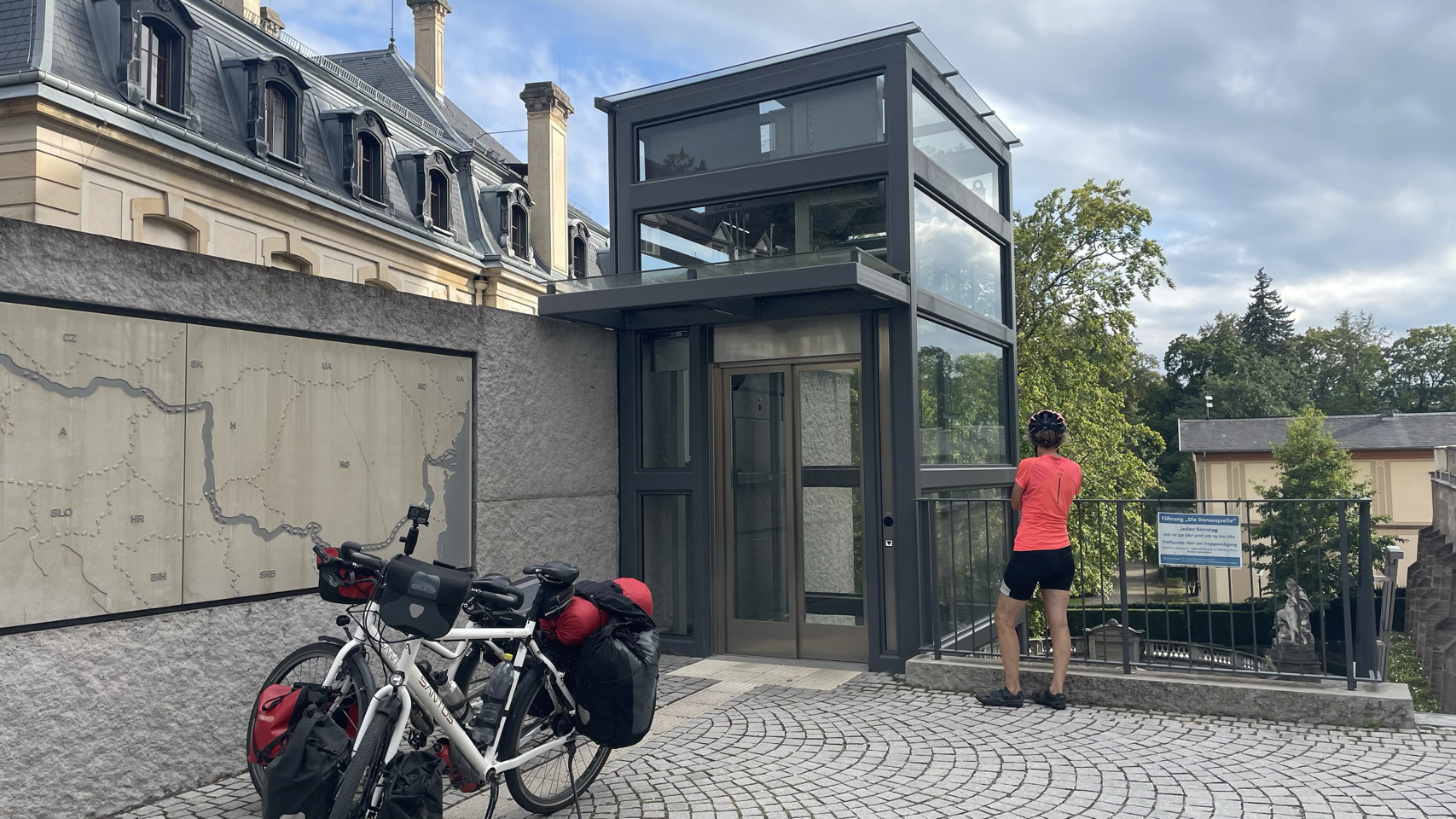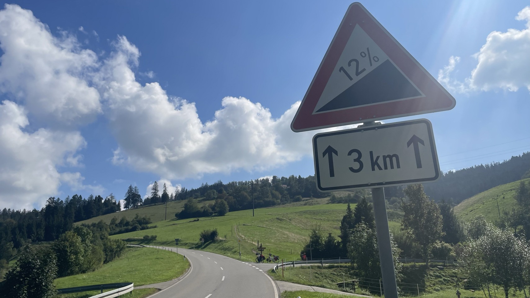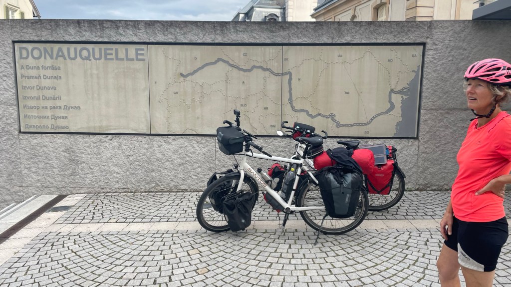 In deze moderne tijd is het lastig om te achterhalen wat de waarheid is. Belangrijk is dan om te weten wat de bron is. Is het verifieerbaar, is de bron betrouwbaar, ga zo maar door. Nou vandaag hebben we een gevalletje “wat is nou de bron” – de bron van de Donau, wel te verstaan. Na de prachtige bergen en dalen, riviertjes en boerderijen komt het serieuzere klimwerk. Uiteindelijk gaan we tot 850m boven zeeniveau, maar wel via een weg waarvan het bord waarschuwt dat het 12% stijgt. Flink buffelen, maar we hebben er zin in. Eenmaal boven volgen er nog een paar enorme kuitenbijters. Tjonge, hoog zijn die bulten niet, maar venijnig steil. We komen op een soort plateau en bedenken ons dat dit de waterscheiding is van de Rijn en de Donau. We gaan vanuit het stroomgebied van de Rijn – die helemaal naar de Noordzee gaat, naar die van de Donau – die helemaal naar de Zwarte Zee gaat. Best gaaf, vinden wij. Nou ja, en dan daal je rustig af langs de rivier de Brigach naar de stad Donauschingen. Daar is, zeggen velen, de bron van de Donau 🤔. In de stad is een bron waar het water letterlijk omhoog borrelt. De Duitse kindjes leren echter op school “waar de Breg en de Brigach samenkomen start de Donau”. Dat punt ligt buiten de stad 😁. Nog weer anderen zeggen dat de bron van de Breg, die het verste van de monding ligt, de eigenlijk bron van de Donau is. Zie hier verwarring alom. Wat we wel weten is dat we morgen doorgaan richting de Bodensee. O ja en een deel van de route daarna, gaat naar de bron van de Rijn. Hopen dat dat geen raadselen met zich meebrengt😎