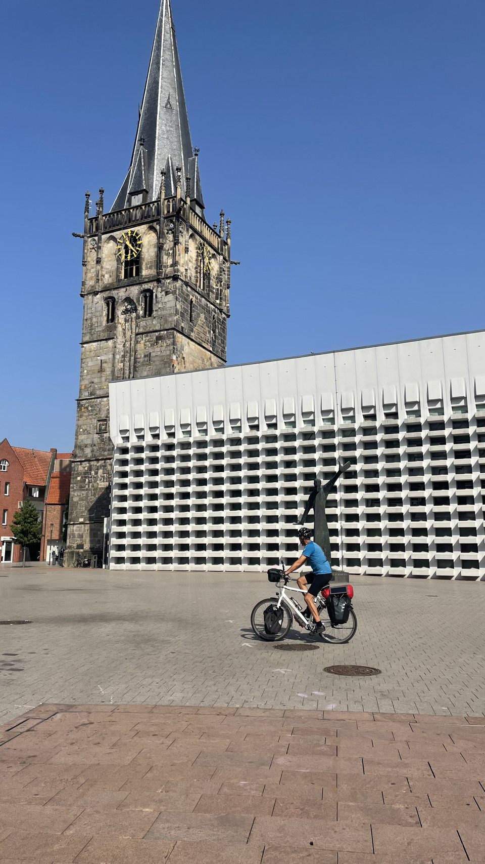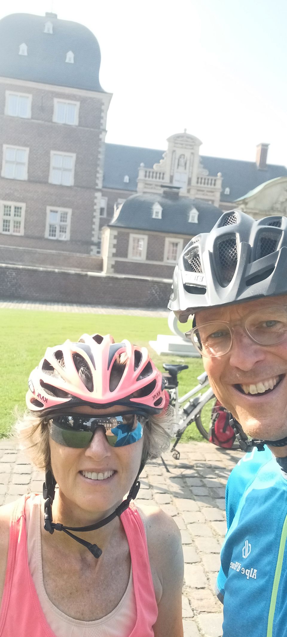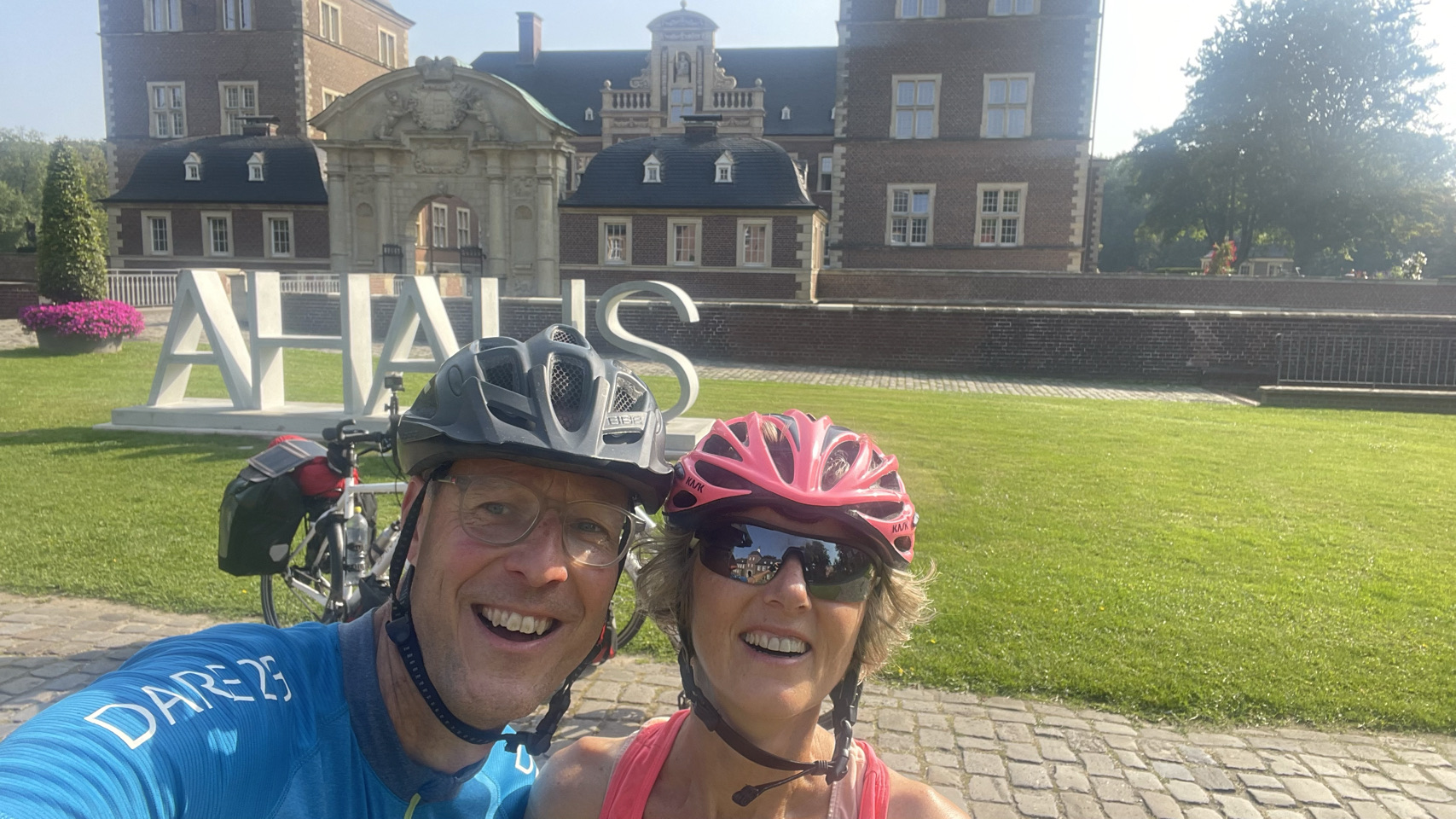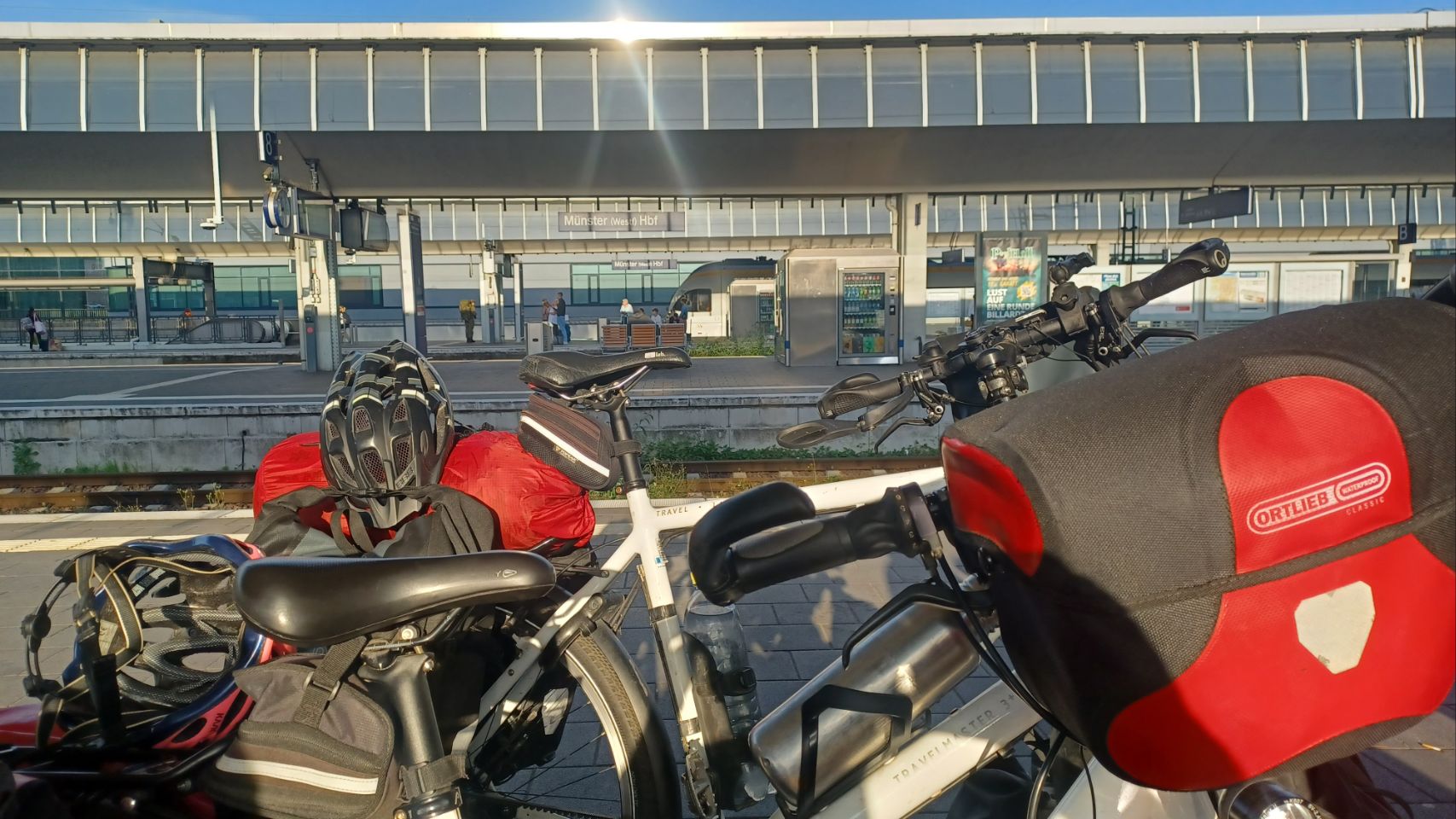 In 2021 hebben we vanaf Münster de radweg R1 gefietst naar de Pools-Duitse grens. Toen zijn we met de trein naar Münster gegaan, voor een mooie fietstour van 3 weken via o.a. Berlijn. Vandaag zijn we fietsend aangekomen in Münster, dus is het een leuke aanvulling op onze eerdere reis. Morgen gaan we met de trein naar Karlsruhe. Tja, en vandaag… fietsen door het westen van Duitsland, het platte is er af en het vriest ook niet meer 😉 – het was vandaag ruim 30 graden. De tent staat op een speciaal tentenveldje en we eten in het restaurant op de camping. We zijn weer helemaal tevreden 😀👍🏕☀️