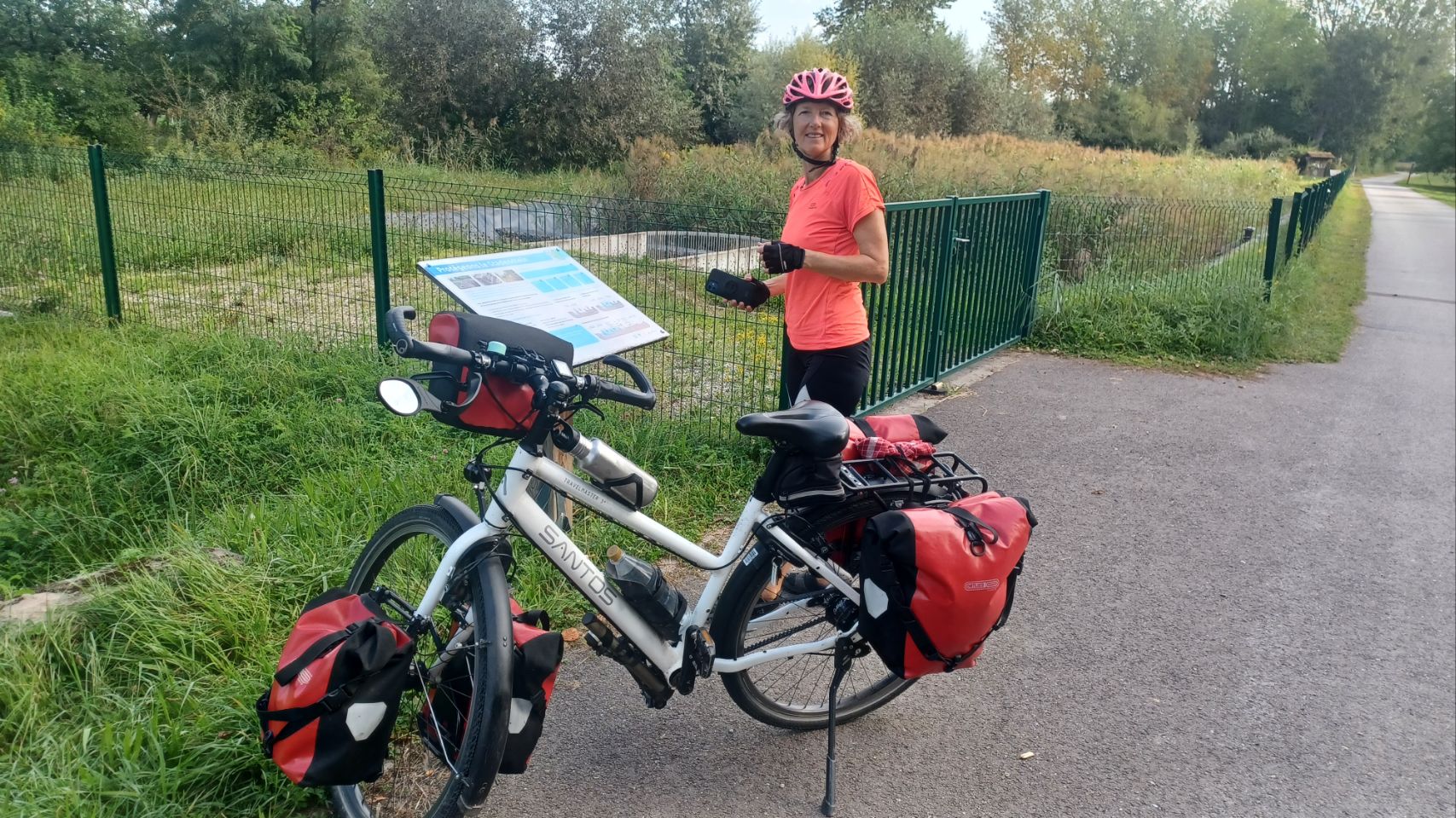De post van vandaag heeft niks te maken met Zoeterwoude-Rijndijk of Heineken ofzo, maar met fietsen in de bloedhitte op de dijk langs de Rijn op weg naar Kehl. Voor die tijd hadden we lekker gefietst aan de Franse kant van de Rijn op weg naar Straatsburg. Lekker kneuterig, boulangerie voor de croissants en de baguette. Die kunnen we nu nog één keer scoren, voordat we verder zuidoostwaarts trekken. Toch ook wel wat zwaar verkeer en grindindustrie zo langs de brede rivier. Om de drukke stad Straatsburg te vermijden, gaan we eerder terug naar de Duitse kant, en het is ook nog korter. Nou daar komt ie dan: de dijk. Kaarsrecht langs het hoge water en bloedje heet. Ho stop!……Na een tijdje weigerde Irma door te fietsen over deze dijk, ze was er helemaal klaar mee, dus moest er een alternatief gezocht. Dat lukt natuurlijk best, wel wat veel auto’s langs over die weg. Uiteindelijk veilig aangekomen op luxe camping met veel fietsers op een tentenveld. Morgen gaat het regenen en waarschijnlijk wel een paar dagen. Een beetje verkoeling is fijn. We zullen zien hoe dat verder gaat.