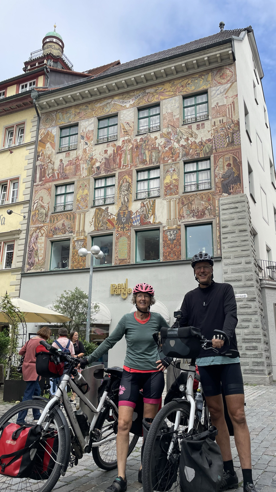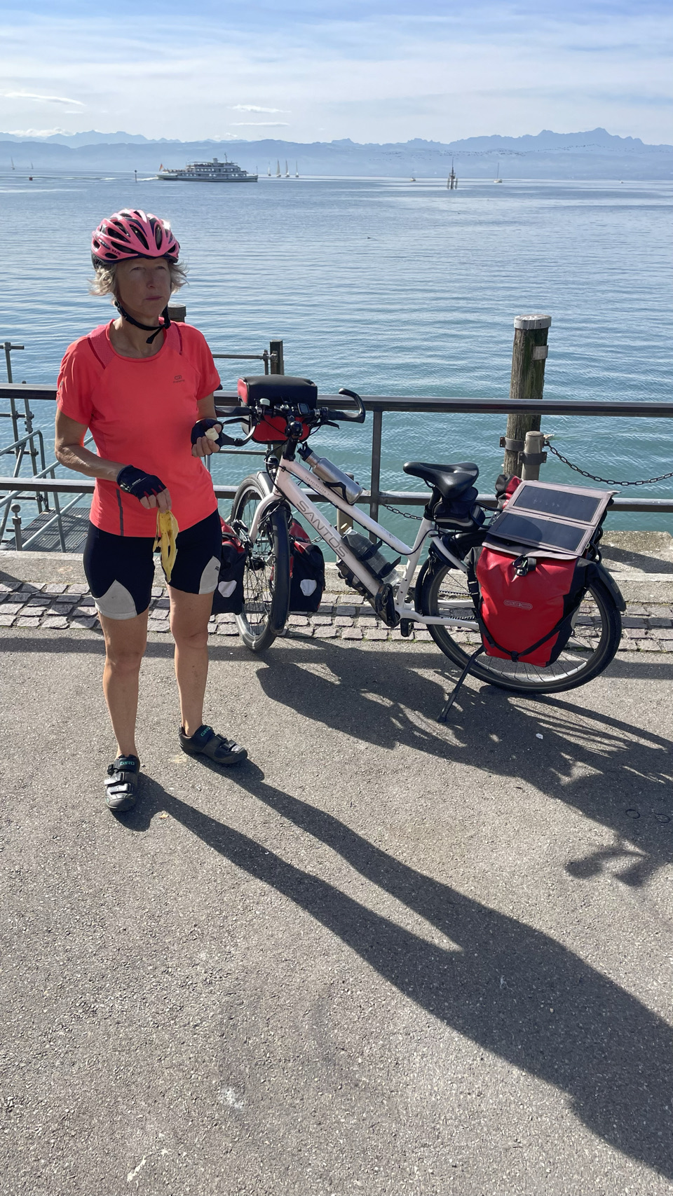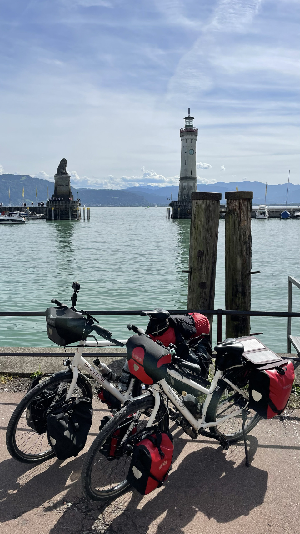 We beginnen in Duitsland en het wordt steeds mooier. De dorpjes en steden zijn lieflijk, en nu komen er steeds meer hoge bergen in het fietsers vizier. Vooral de oude stad van Lindau, gelegen op een eiland is een parel. Omdat het zondag is, zijn er veel mensen op pad en vooral ook op de fiets. Opvallend hoe goed de fietsroutes hier zijn en hoeveel ruimte de fietsers krijgen. Dat verandert niet als we vervolgens Oostenrijk inrijden. Het is hier eigenlijk net nog een beetje netter. We fietsen prachtig langs het meer, via de stad Bregenz en komen nadat we de Rijn weer even kort gezien hebben, in Zwitserland aan – ookal vind Polarsteps dit schijnbaar nog Oostenrijk 🤔. De Rijn stroomt hier de Bodensee in. Morgen gaan we verder langs de Rijn dieper Zwitserland in. Héél veel zin in !!!