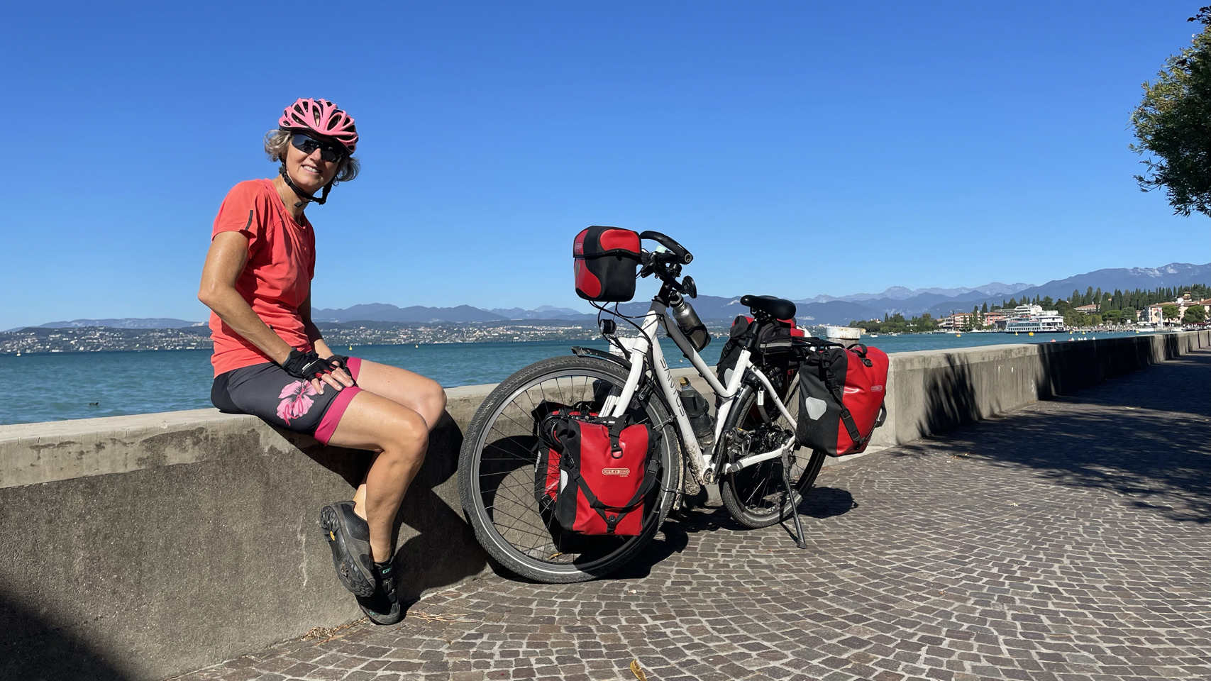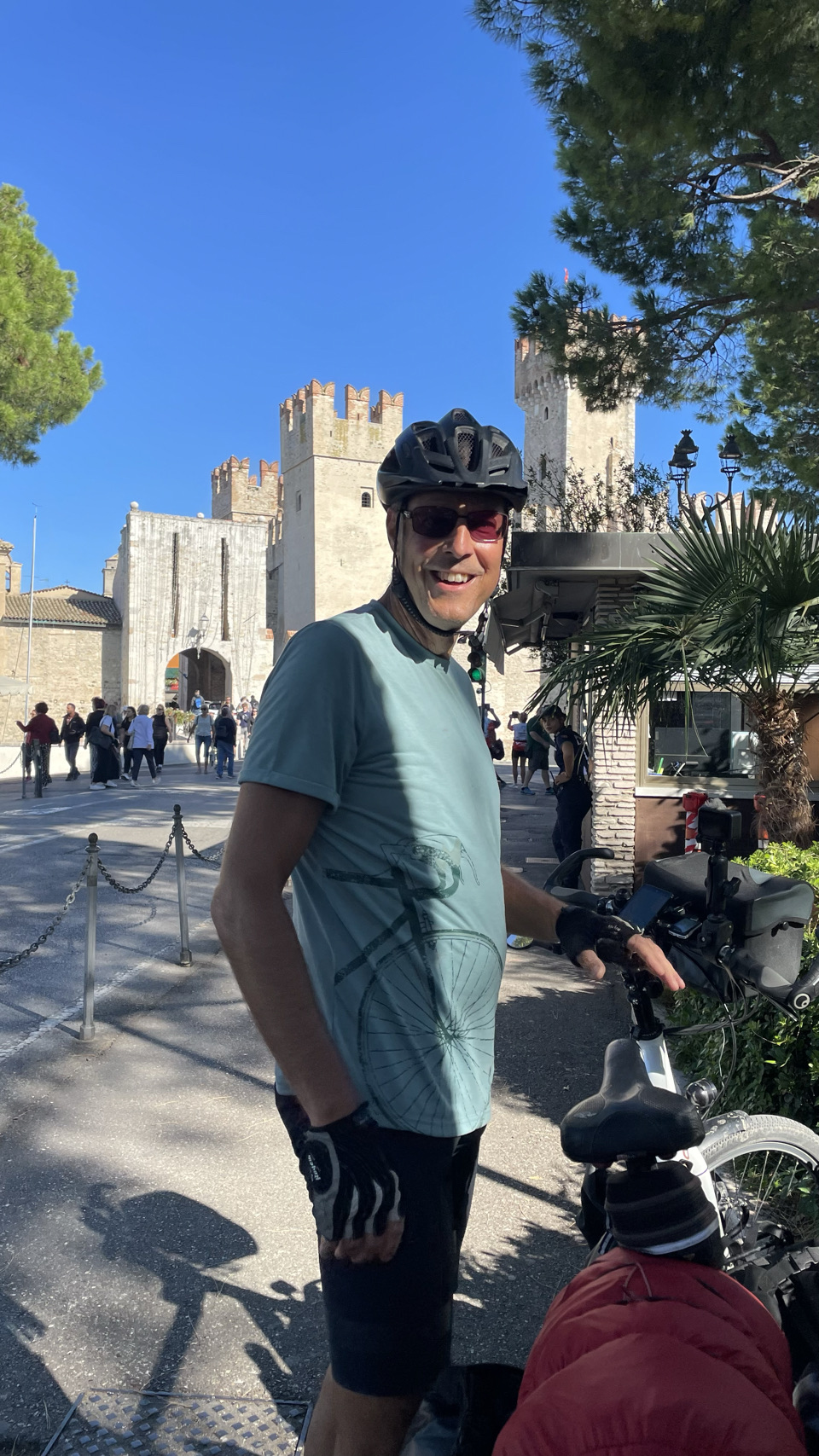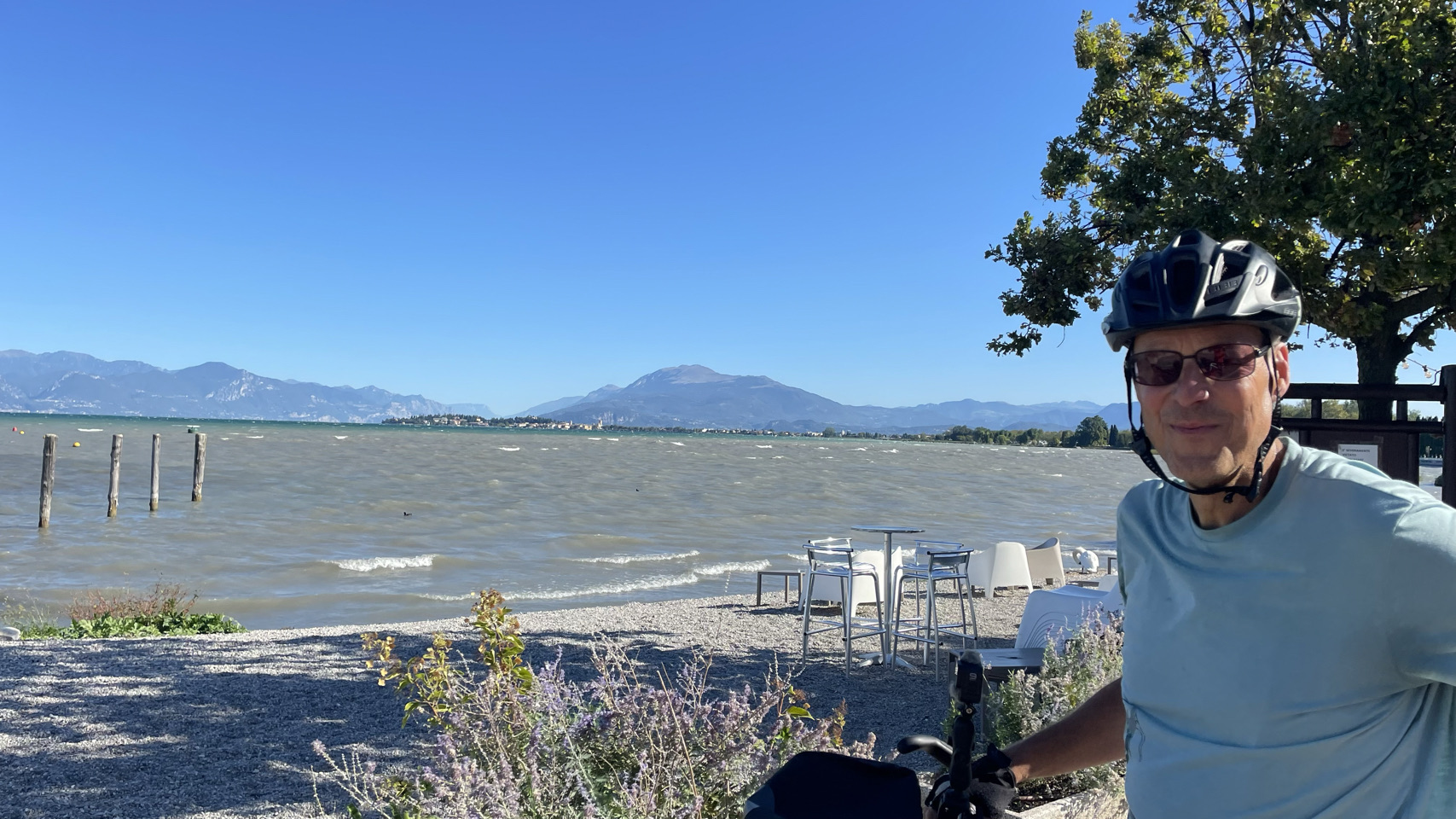We hebben vandaag ruim 70km gefietst van Lago d’Iseo naar Lago di Garda. Er waren venijnige heuveltjes en het weer was prachtig. Toch had Sijtse er geen zin in en was chagrijnig. Hopelijk gaat het morgen weer beter dan fietsen we het eerste stuk en nemen het laatste stuk de trein naar Trento.