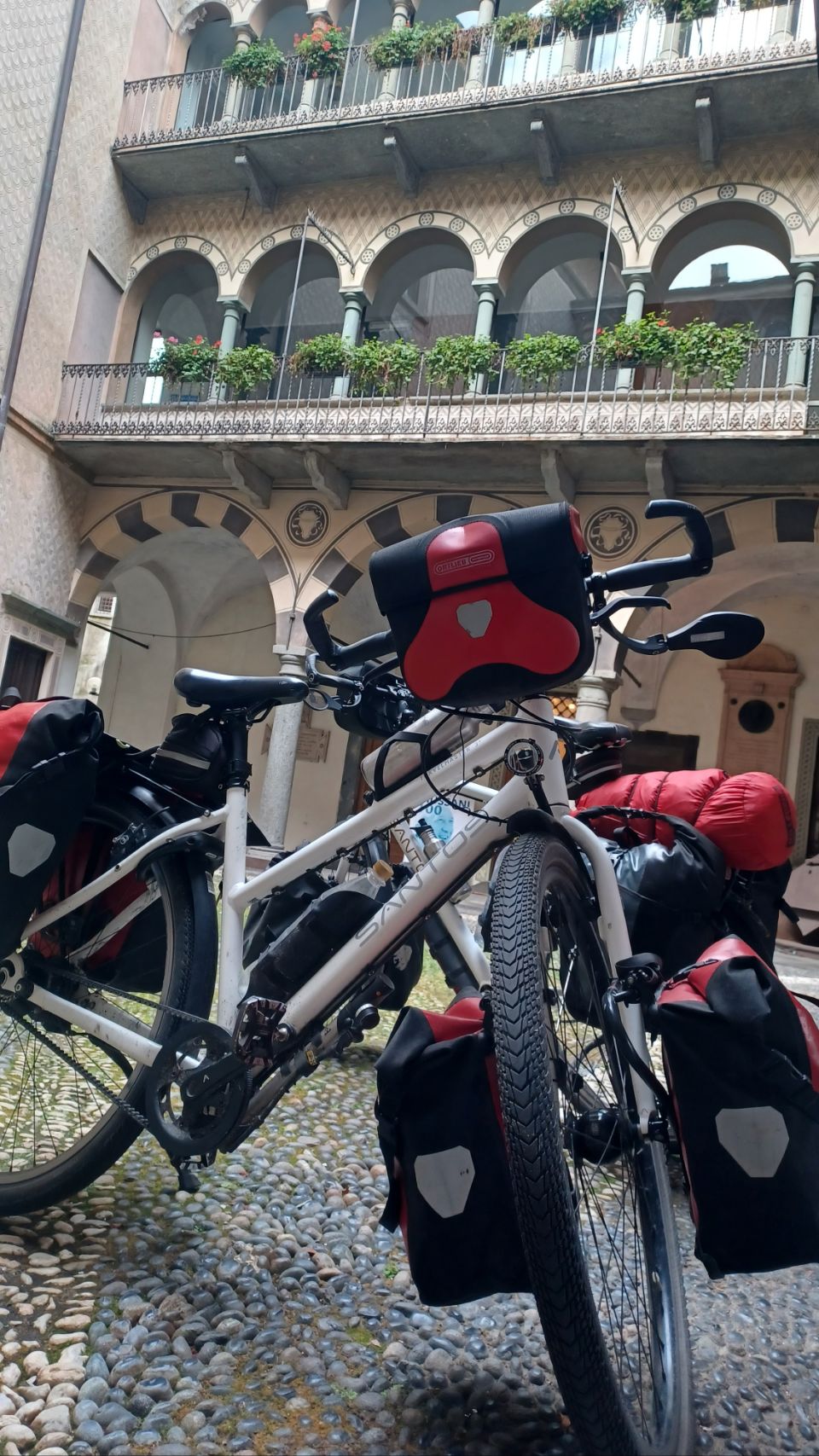 Tijdens onze 6 maanden sabbatical fietsreis hebben we ervaren hoe gaaf het is om allerlei mensen tegen te komen. Vandaag was weer zo’n dag. We fietsen langs de prachtige kust van het Comomeer naar Veranna. Het is maar 15km, maar best wat op en neer en nat. We kopen de tickets voor de veerboot voor maar 11€ (voor 🙎♂️🙎♀️🚲🚲). Daar ontmoeten we Eva (uit Duitsland) en haar vriend David (uit Frankrijk). Ontzettend leuk om tijdens de overtocht kennis te maken, lekker bij te kletsen en ervaringen te delen. In het schattige maar super luxe en mondaine Bellagio komen we ze nog een paar keer tegen. We besluiten onze euro’s hier niet uit te geven aan véél te dure koffie en fietsen na wat rondkijken verder. In Vassena drinken alsnog het bakkie koffie, met croissants en later ook nog een heerlijk pizza als lunch. Met handen en voeten, gebrekkig Italiaans van ons en Engels van de cafébaas, communiceren we toch. Via Lecco komen we bij de camping aan het water. Tijdens het avondeten spreken we een Nederlands stel en ook dat is weer erg gezellig. Dit soort ontmoetingen maak je vaak mee op fietsreizen, omdat je even schuilt voor de regen, of echt accuut iets moet eten etc. en ze maken de belevenissen telkens weer fantastisch. 22 september: rustdag. Het weer voor vandaag ziet er structureel slecht uit. We gaan geen alternatief verzinnen en blijven lekker aanrommelen onder de grote overkapping op de camping.