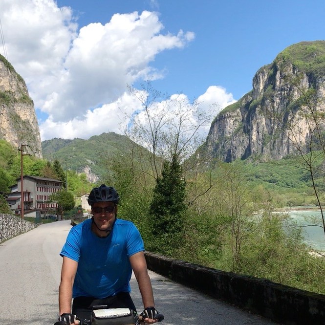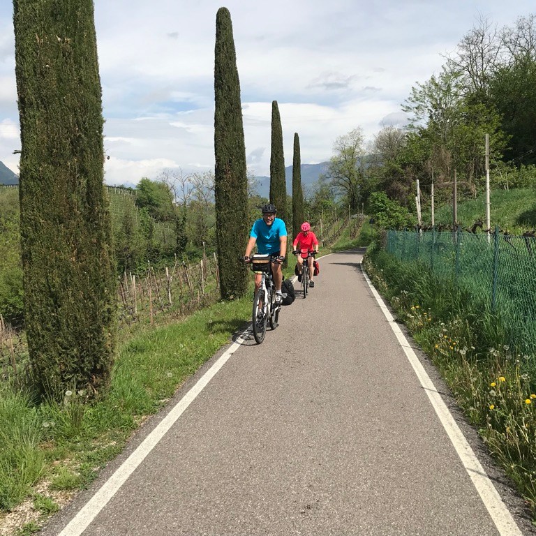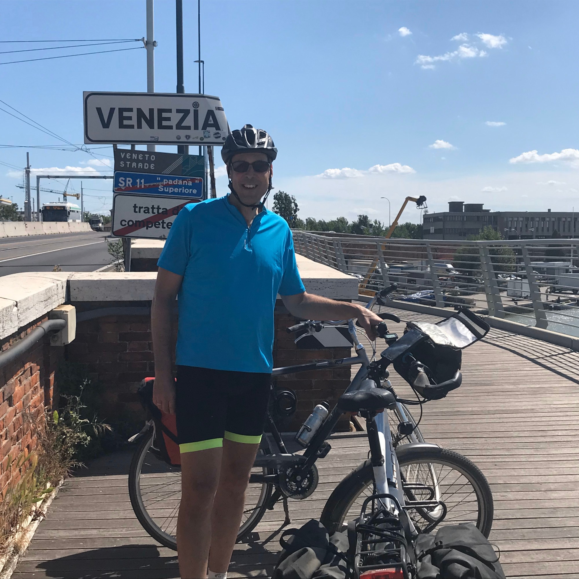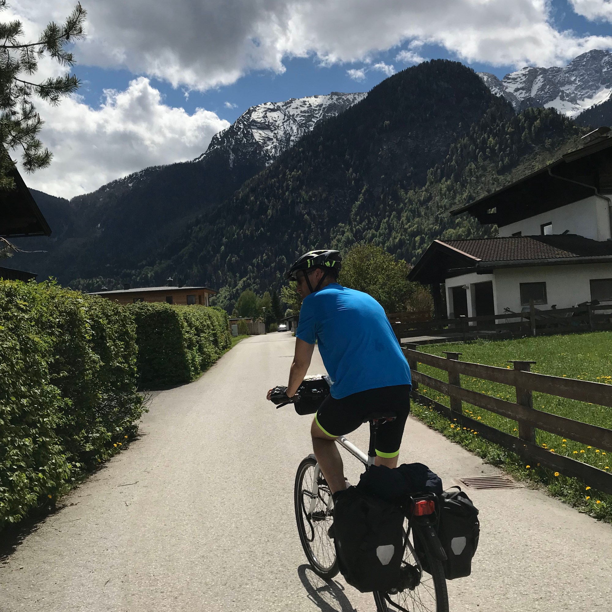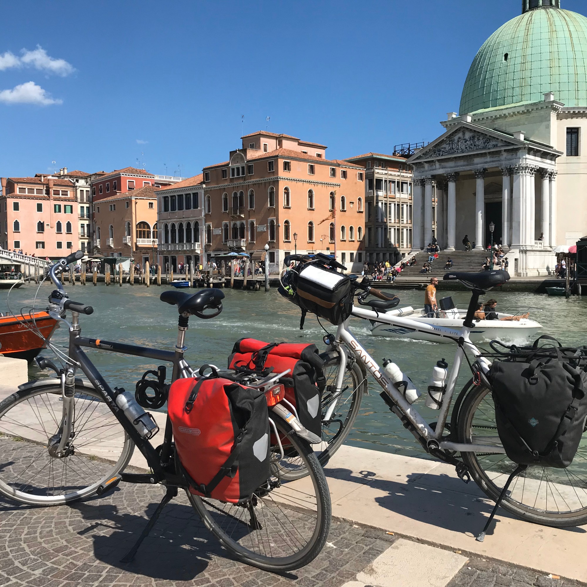 Met de nachttrein naar Salzburg om tijdens de meivakantie in x dagen via Berchtesgarden, Zell am See, Bad Gastein, met de trein aan het eind van het Gasteiner Tal, in 20 min. via de Tauerntunnel door de bergen, en daarna vele kilometers afdalend, via Villach, heerlijk over oude spoorlijntjes Italië in fietsen. Langs de rand van de Dolomieten, richting Treviso in de po-vlakte. Aankomen op de fiets in Venetië via de lange brug is echt fantastisch. De terugreis was met de trein over de Brennerpas en de nachttrein vanuit Innsbruck naar huis.